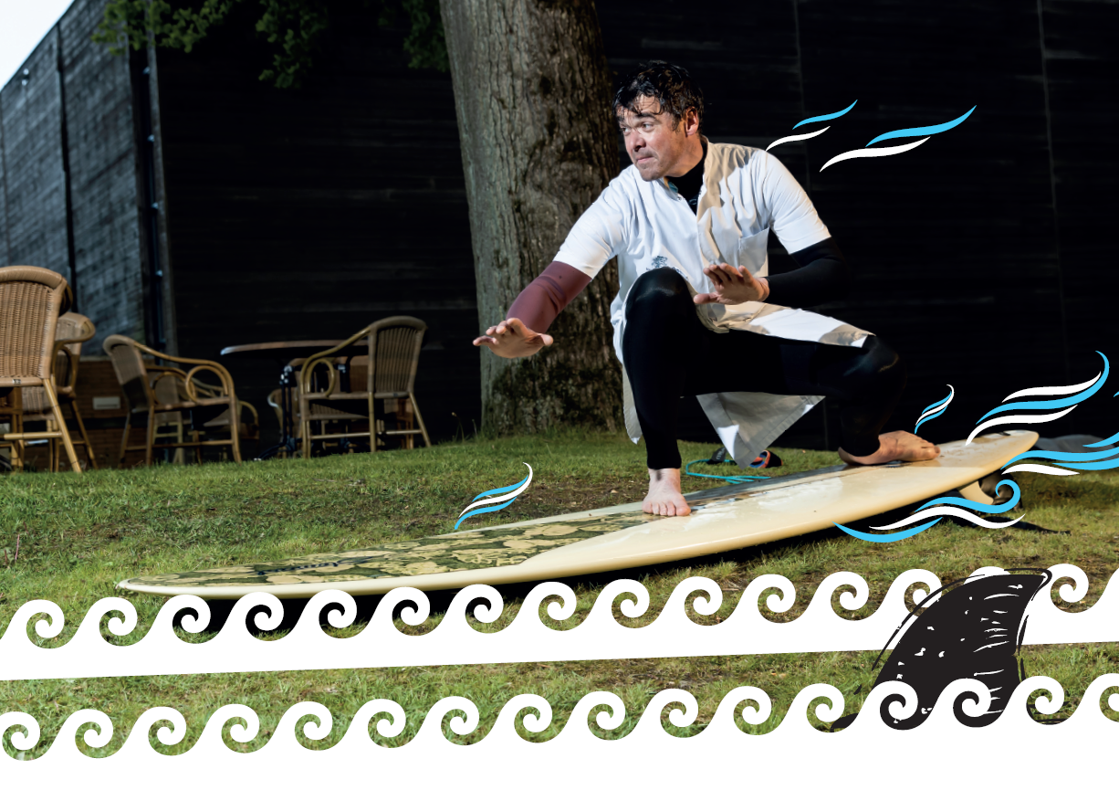 “Ik heb onder andere gesurft in Marokko, Portugal en de VS. Met hoge golven en sterke stromingen kan het best gevaarlijk zijn. Dat geldt ook voor het off-piste skiën en snowboarden. Als ik het echt niet vertrouw, dan ga ik niet het water in of de berg af. Ik stond wel ooit op het punt om de helikopter te bellen, omdat we ergens off-piste waren beland met te steile kliffen. Gelukkig kwamen we met wat klimwerk veilig beneden. Die risico’s en de bijbehorende kick geven me een gevoel van vrijheid. Zo heb ik in coronatijd een aanvulling op mijn klimspullen gekocht en ging ik daarmee met mijn kinderen van het dak van ons huis abseilen. Dat was nog op het Jeugdjournaal. Ik klink nu als een waaghals, maar eigenlijk ben ik best voorzichtig. Mijn drie jongens durven veel meer dan ik!”