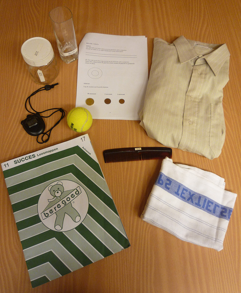 De benodigdheden voor het afnemen van de SULCS zijn dagelijkse gebruiksvoorwerpen waarvan een overzicht staat vermeld in bijlage 1 van de score lijst.
